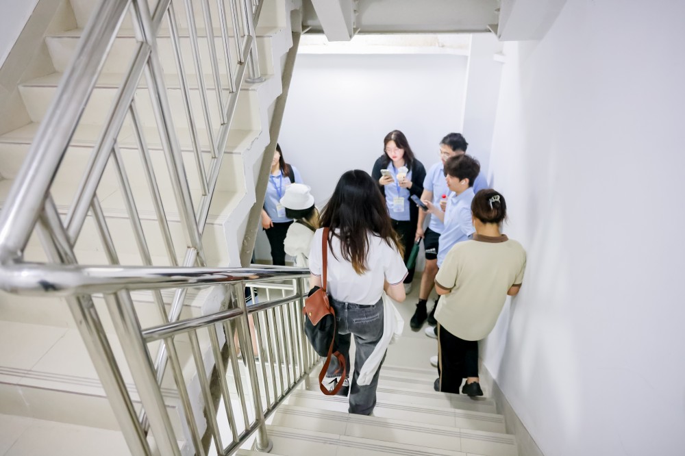早上,我們為參與實習計畫的同學們組織了一場消防疏散演練。在專業人員的全程指導下,同學們都沉著冷靜地通過消防通道,快速而有序地撤離至一樓安全區域。