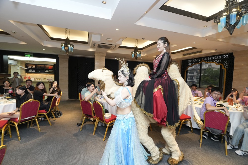 席間,熱情的新疆舞蹈演員翩然登場,輕盈的旋轉、絢麗的服飾引得陣陣歡呼。在歡快的音樂聲中,大家紛紛加入舞池,與演員們共跳新疆舞,笑聲與掌聲此起彼伏。