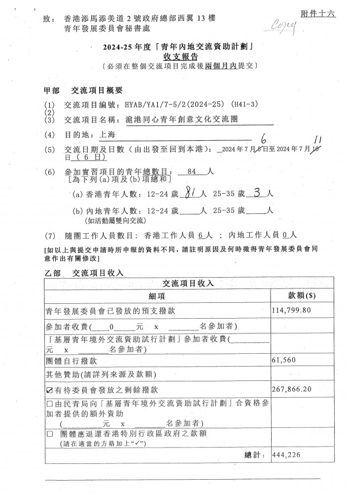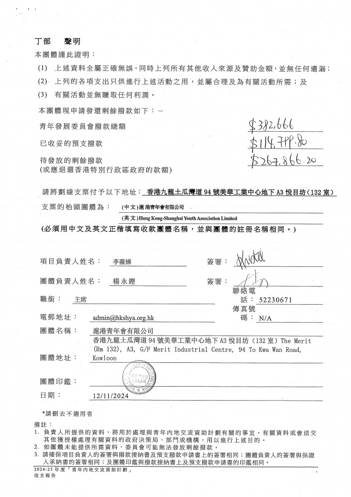 收支報告-滬港同心青年創意文化交流團 - 滬港青年會