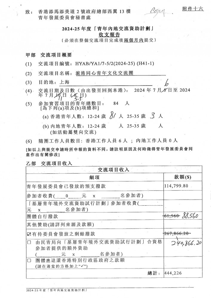 收支報告-滬港同心青年文化交流團